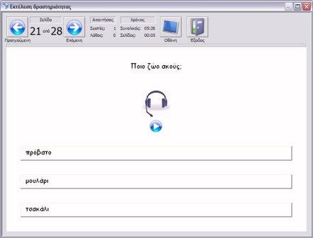 Επιλογή εικόνων - εκφωνήσεων - γραπτών λέξεων με σημασιολογικά, φωνολογικά,